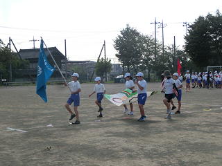 台風21号の影響により、状態のよくなかった校庭も、地面が乾き,今朝は初めて校庭での全校練習を行いました。