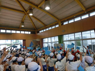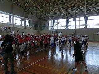 運動会の応援練習も、熱が入ってきました。どの色も団長を中心にいい声を出していました。当日の本番が楽しみです。