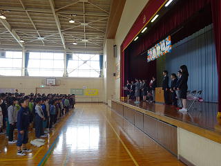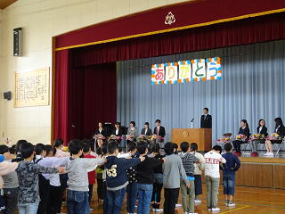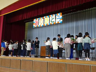 3月で川本北小学校を去られた先生方が来校され、離任式が行われました。式の中では、川本北小での思い出の他にも、川本北小の子どもたちのよいところについてもいっぱいお話しいただきました。「あいさつ」「返事」「元気で明るい」「パワーがある」など、褒めていただいたところをこれからも伸ばしながら、よい学校にしていきたいと思います。