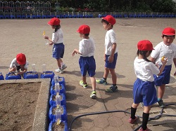 子どもたちは、毎朝「大きくなってね。」「芽が出てね。」