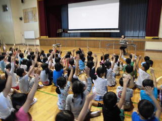 学校探検を行いました。学習したひらがなを学校の中で見つけていろいろな教室を探しました。隠れているひらがなをつなぎ合わせるとある言葉ができます。目をキラキラさせてがんばっていました。
