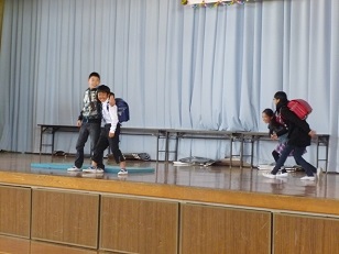 始めに、1年生~の学校生活の様子を劇にしました。何度も笑いが起こり、演じている子どもたちも大満足な様子でした。