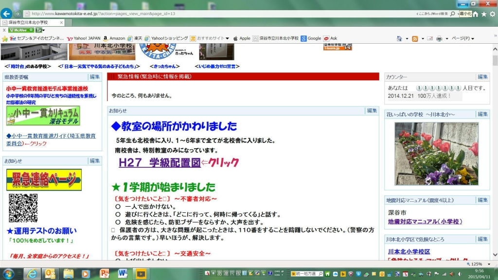 深谷市教育委員会の方針で以下の通り、本年度特別の教育課程を実施しました。