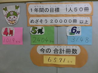 現在、本の貸し出し総数は、6,571冊です。9月には、1万冊を超えるかもしれません。児童の皆さん、たくさん本を読みましょう。