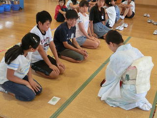 本校では、ふるさと教育の一環として、地域の方を先生としてお招きし、日本の古き良き文化や川本地区の伝統芸能などを教わる機会を、授業の中に随時取り入れています。