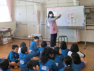保健の先生からは、インフルエンザやノロウィルスへの予防策として、マスクの着用やうがい・手洗いの励行をしっかりとの話がありました。