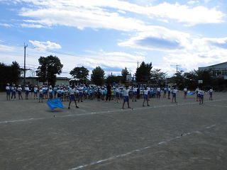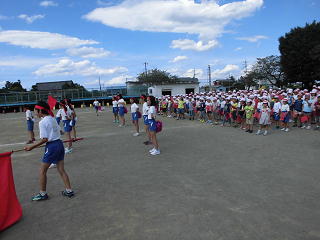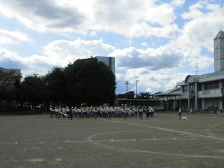 今日の昼休みは、全色が応援練習を校庭で行いました。