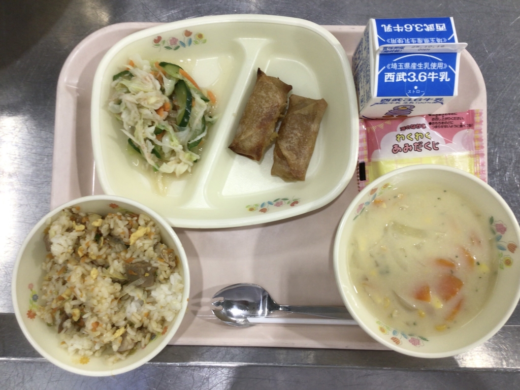 10月11日は、川本北小の開校記念日になります。明日から5年生が林間学校でいないので、全校でお祝い給食をいただきました